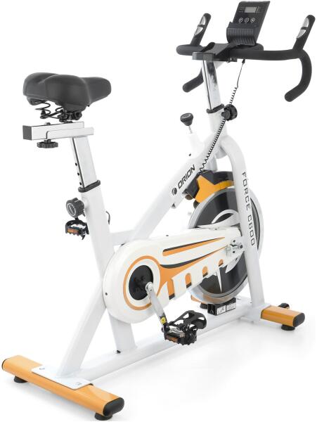 ORION Force C600 Spinning kerékpár, lendkerék 18kg, max. felhasználói súly 110 kg Jellemzők:A felhasználó maximális súlya: 110 KG;Számítógépes funkciók: beolvasás, idő, távolság, sebesség, kalória, pulzus;Lendkerék: 18 KG;Szíjhajtás;Alumínium pedálok;Kényelmes, műanyag markolattal borított kormány;Csomag mérete: 103,5*87*25,5 cm;Méret összeszerelve: 110*110*48 cm;Súly nettó/bruttó: 42,5 / 46,5 kg.